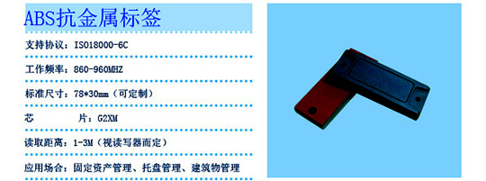 結(jié)合市場需求,推陳出新,推出ABS抗金屬標(biāo)簽,PCB抗金屬標(biāo)簽,更有王牌圖書館標(biāo)簽,和一系列智能卡。1、ABS抗金屬標(biāo)簽ABS抗金屬標(biāo)簽,采用耐高溫工業(yè)ABS塑料/金屬屏蔽材料/環(huán)氧樹脂罐封耐高溫,最高可承受200攝式度的溫度。對化學(xué)物質(zhì)也有非常強(qiáng)的抵抗作用,PH值7正反4范圍內(nèi)基本不會(huì)受到影響。