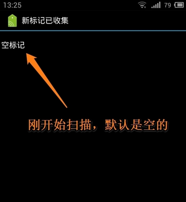 1、剛開始你把NFC標(biāo)簽放在手機(jī)背面,手機(jī)掃描的是空的,因?yàn)槟氵€沒有把數(shù)據(jù)寫入標(biāo)簽里噢。