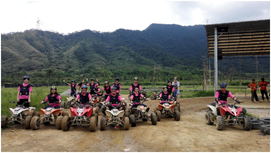 時間還早,趁著中飯之前,我們來到了青山環繞的沙灘車基地。早上的雨水還沒有干,一下車,泥土的氣息撲面而來。基地的視野很寬闊,讓人心曠神怡。每個人騎著自己的沙灘車出發了,到處都是泥坑,就是這種刺激,讓大家玩的更帶勁,不管不顧,勇往直前。